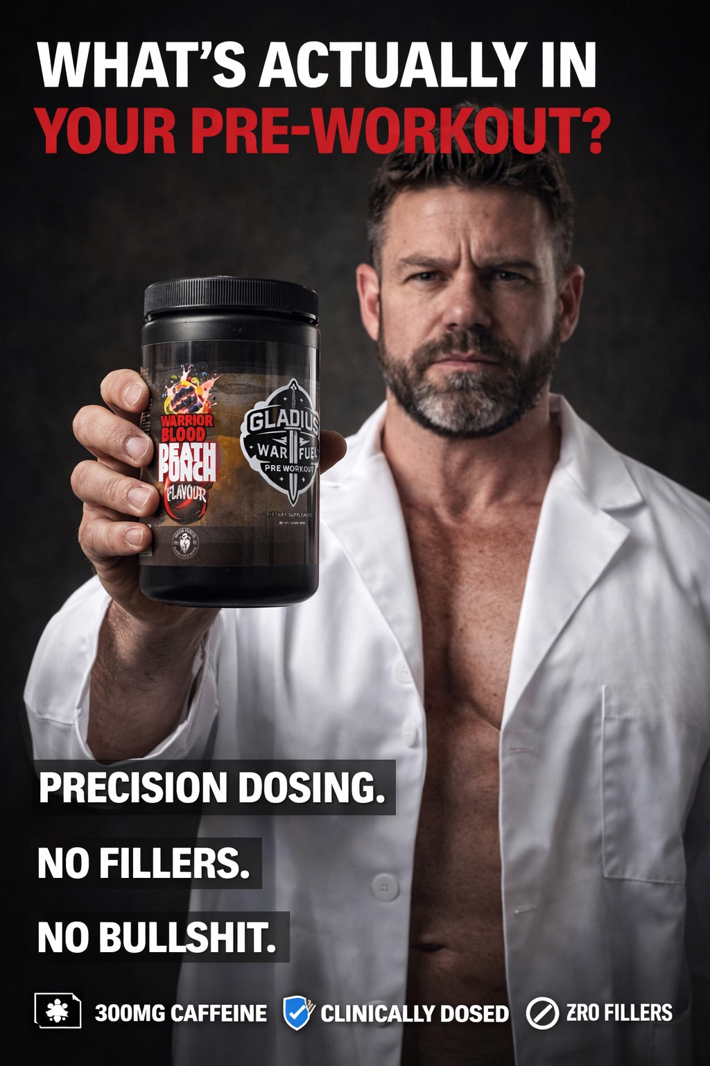 NOT BUILT TO BE BIG. BUILT TO BE LETHAL. The Gladius wasn't the largest weapon on the battlefield, YET IT CONQUERED ENTIRE EMPIRES. It didn't need to be BIG. It was precise, efficient… unforgiving. A blade designed for one purpose: maximum impact. Minimum waste. That same principle built Warfuel. While other brands chase hype, overload formulas, and hide behind noise—we refine. We strip away everything unnecessary. Every scoop is measured with intent. No filler. No guesswork. No wasted movement. Small batch. Precision crafted. Full dose. Clean energy. Elite focus. This isn't for everyone. It's for the ones who show up locked in. Gladius Warfuel. Forged for power. Built for control.
